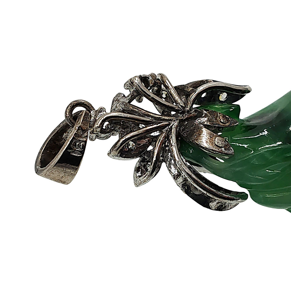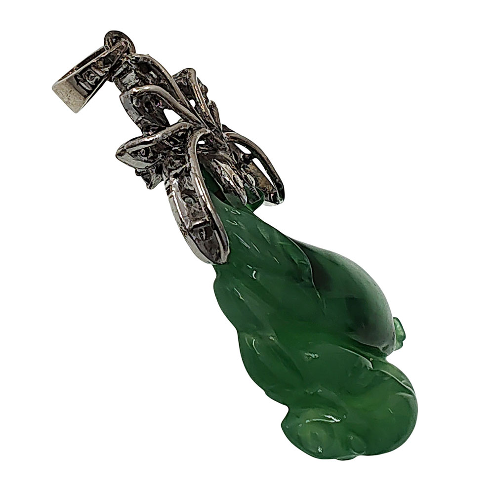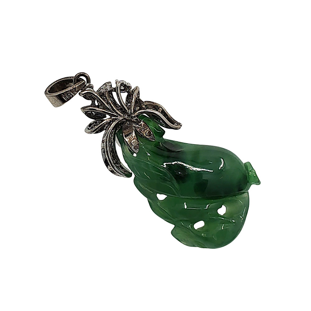 Vintage carved jade & diamond 18KW pendant, circa 1940. This vintage pendant features a carved green jade set in 18 karat white gold and accented with .15 CTW of diamonds.